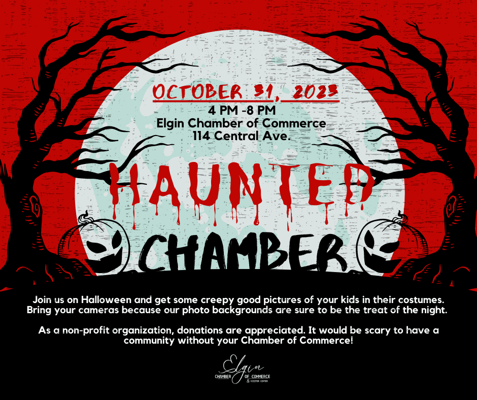 Join us on Halloween and get some creepy good pictures of your kids in their costumes. Bring your cameras because our photo backgrounds are sure to be the treat of the night. As a non-profit organization, donations are appreciated. It would be scary to have a community without your Chamber of Commerce!